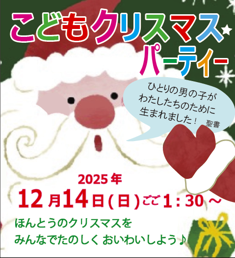 ほんとうのクリスマスが分かるスライドやクリスマス賛美、ゲーム、ティータイムもしながら楽しくすごします🎵